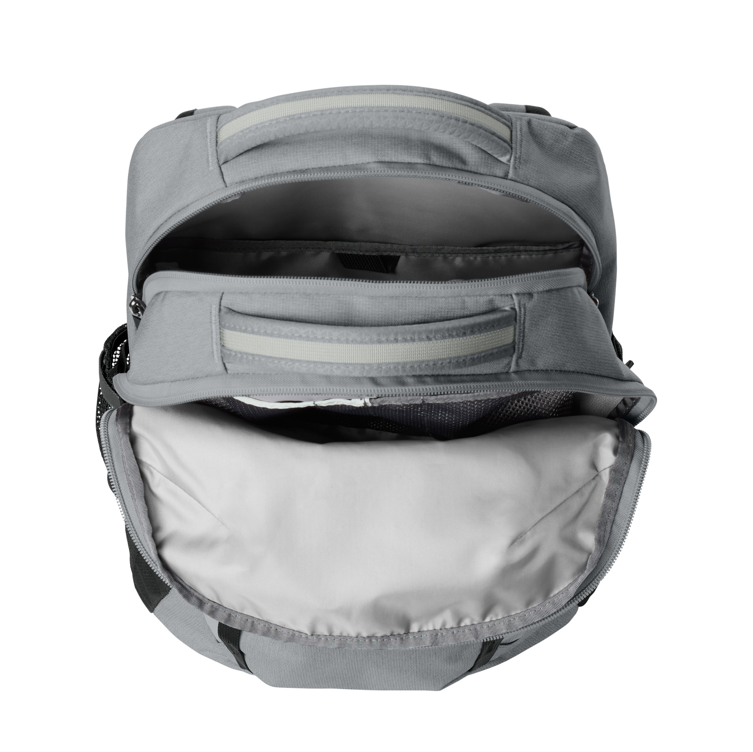 - Updated front compartment offers simplified organization and maintains essential features for storage such as secure-zip pockets, tablet sleeve and key fob